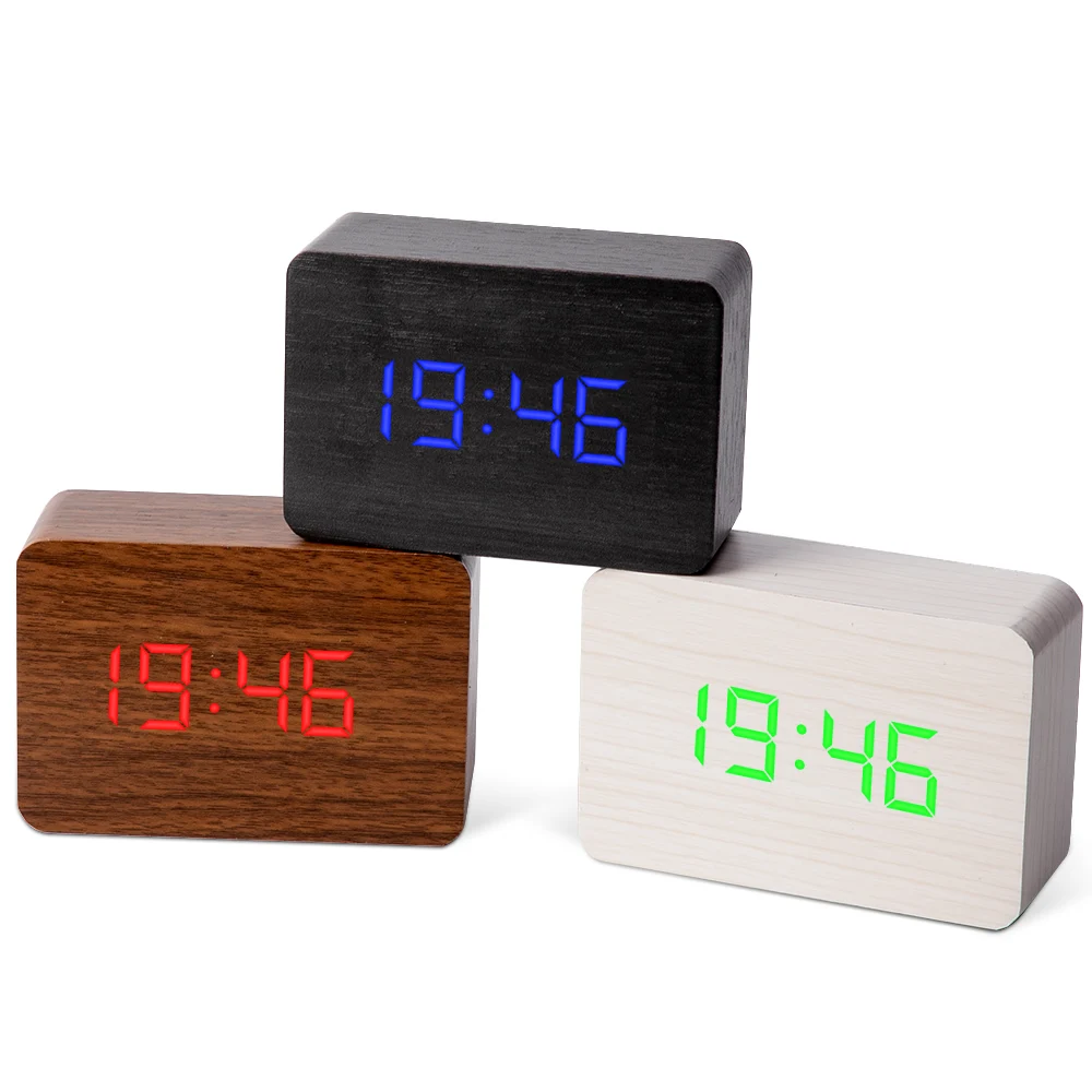 Деревянный бамбуковый светодиодный цифровой будильник Reloj Despertador современные настольные часы с температурой светодиодный электронный