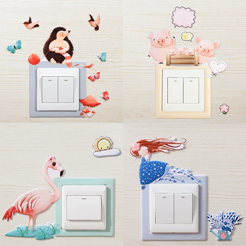 Горячая продажа 1 шт. Декоративные наклейки для настенных выключателей наклейки 3D силиконовые светящиеся животные мультфильм украшение до...