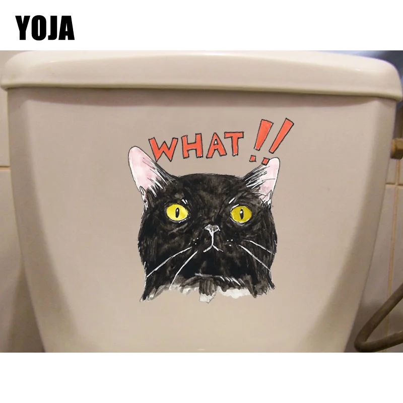 YOJA см 20,1*19,9 см что! Удивленный Кот личность стены Туалет стикеры дома ванная комната Декор T1-0094