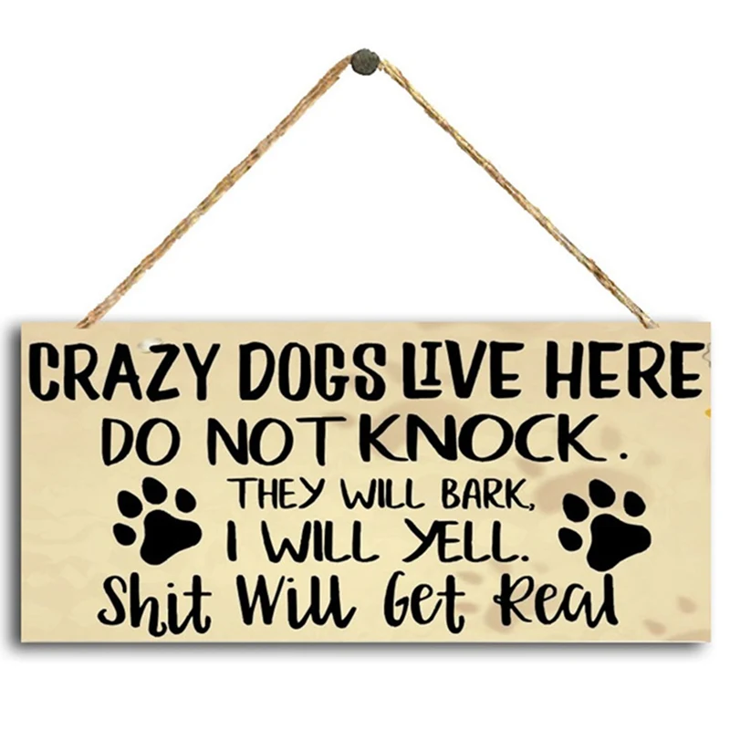 1 шт. вывеска Crazy Dogs Live здесь не стучит, они будут лаять, я буду кричать предупреждающую дверную тарелку забавная подвесная табличка для домашнего декора