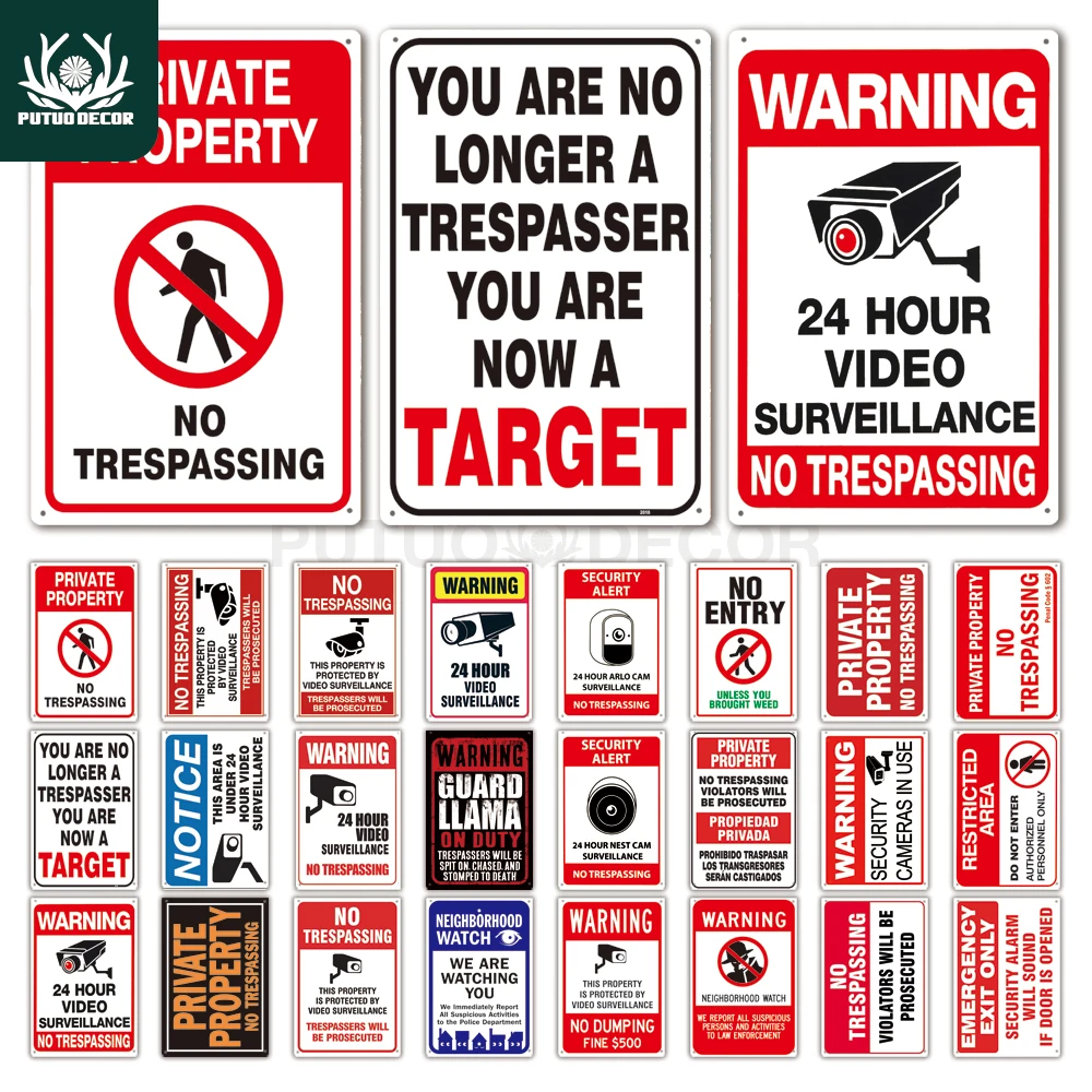 Нет Знак запрета несанкционированного проникновения Предупреждение металлический знак видеонаблюдение знак настенный Декор знак yard без в...