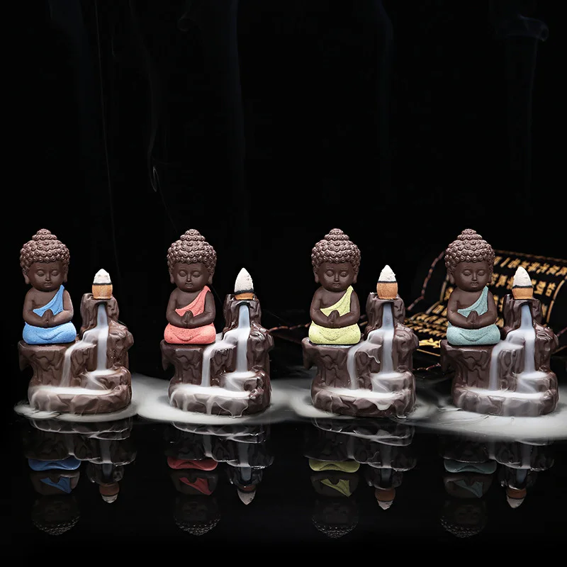 Little Monk Censer Creative Home Decor Small Buddha Incense Holder Backflow Incense Burner Use Home Office 50pcs Incense Cones