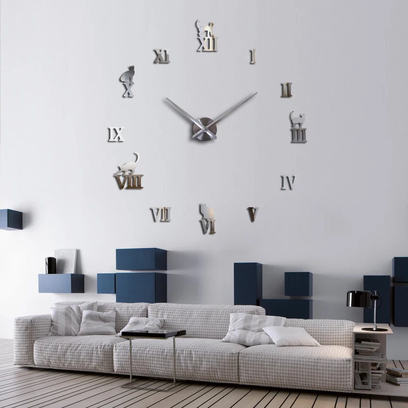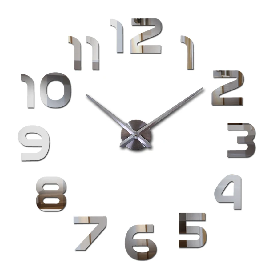 Современные diy акрил зеркало моды настенные часы 3d Большой Кварцевые часы Гостиная украшения дома натюрморт серебряные наклейки