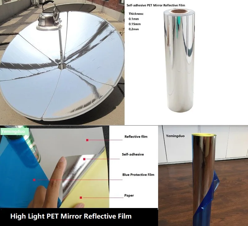 50 см * 1 м самоклеящаяся ПЭТ дымоход светоотражающая пленка зеркальная Водонепроницаемая УФ отражающая наклейка солнечные печи концентрированные