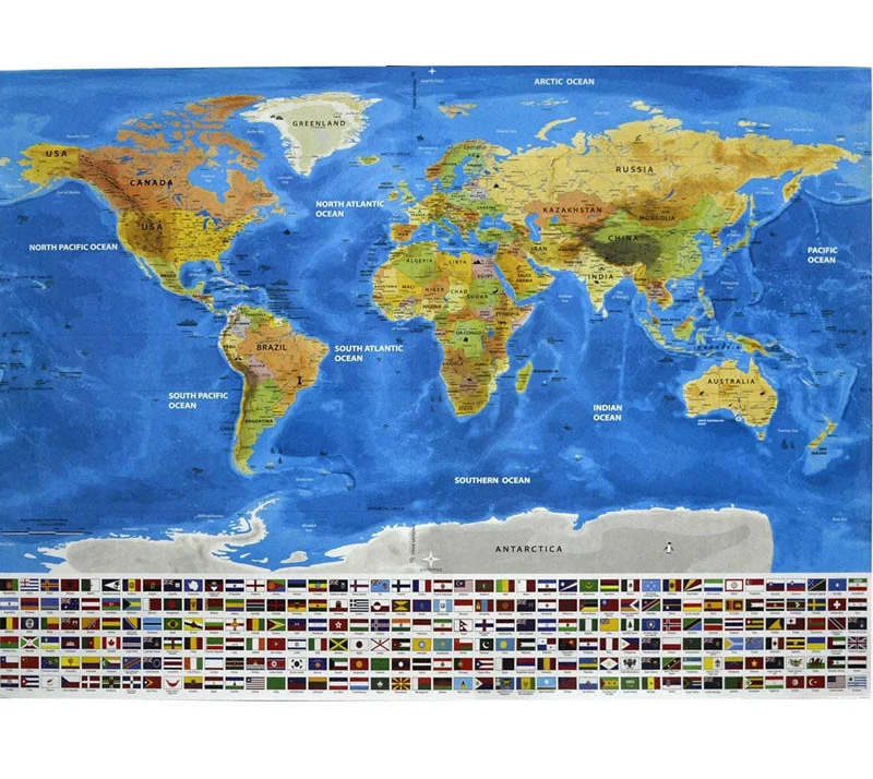 Флаг Карта океан море стиль Карта мира скретч стикер стены голубое золото национальная география путешествия от карты Прямая поставка