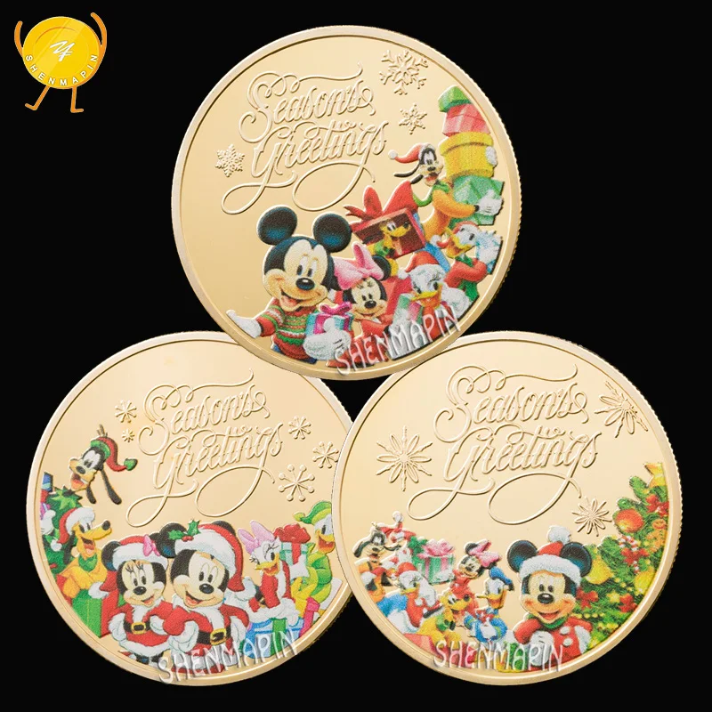 Счастливого Рождества цвет мультфильм ПАМЯТНАЯ МОНЕТА 999 золотые украшения для дома коллекционные монеты подарок на Новый год День рождени...