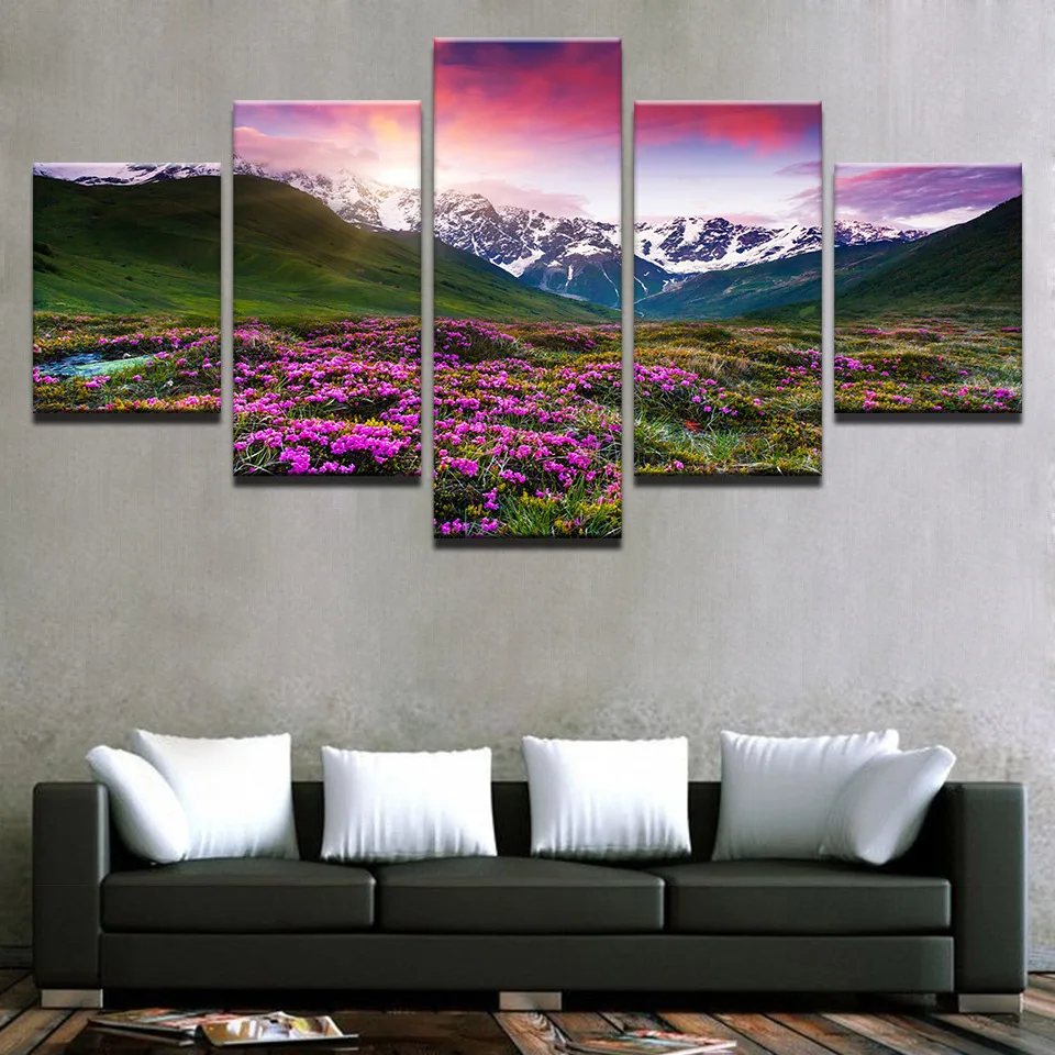 Без рамы 5 шт. пейзаж цветок горный холст настенные картины водопад принт картина настенные картины для гостиной спальни