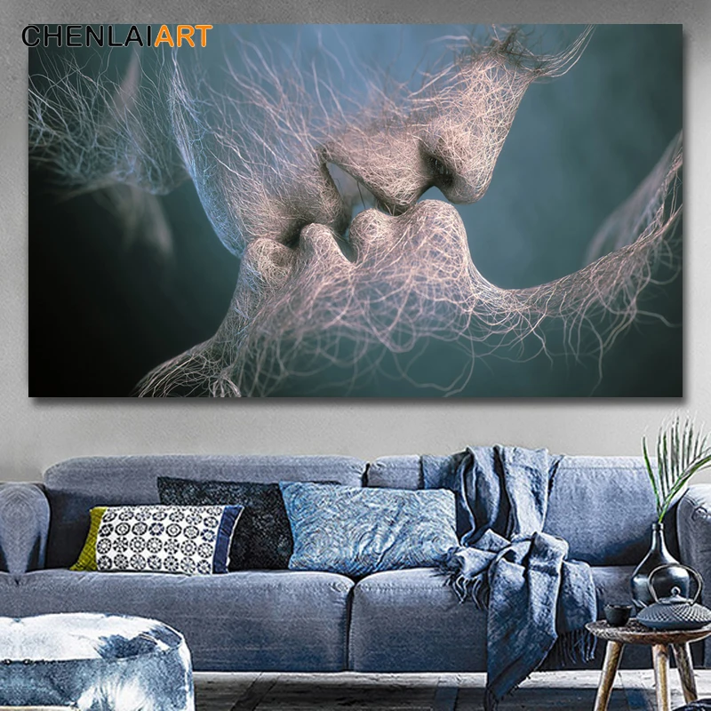 3 цвета цвет: черный, синий желтый Современный абстрактный любовь поцелуй холст картины плакат и печатная графика фотографии для гостиная с...