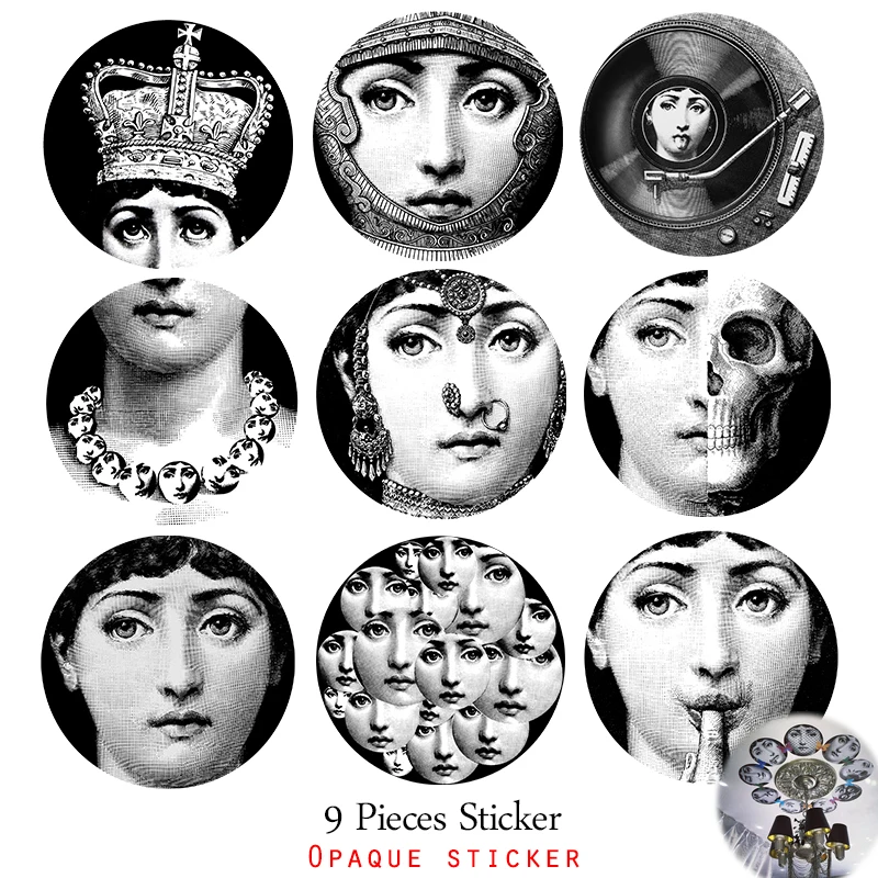 9 Pieces Italy Designer Variety Face Plates Pattern Wallpaper Separated Painting Wall Stickers DIY Wall Decoration Opaque