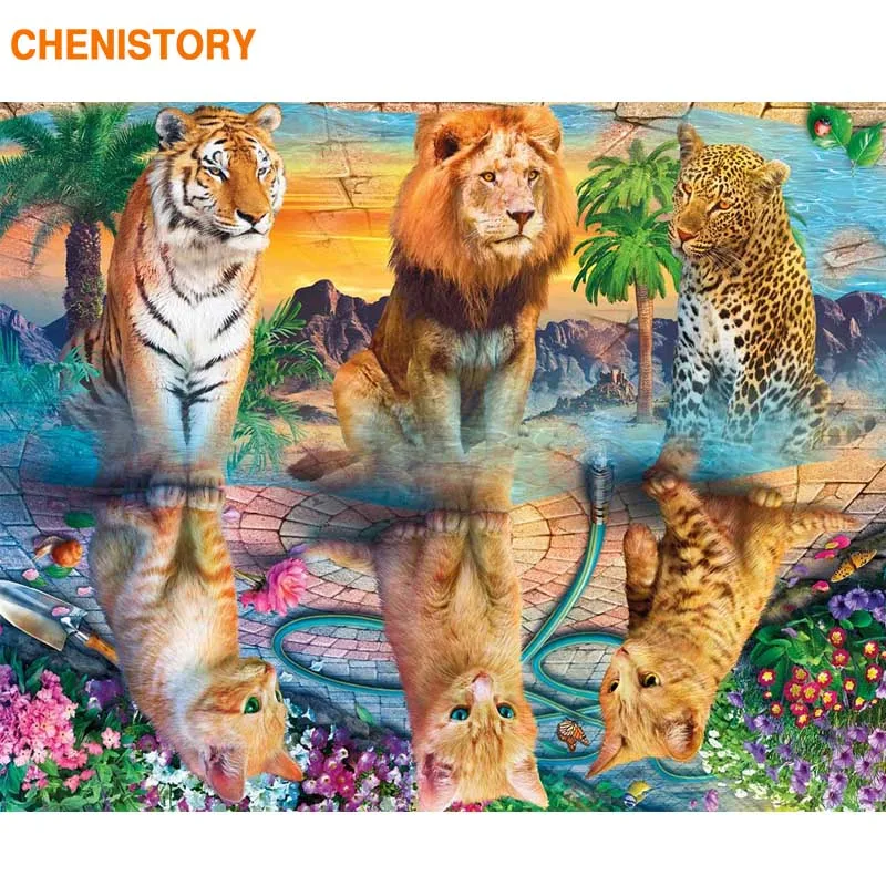 CHENISTORY рамка отражение животных DIY картина по номерам абстрактная современная картина по номерам уникальный подарок для домашнего декора 60x75 см
