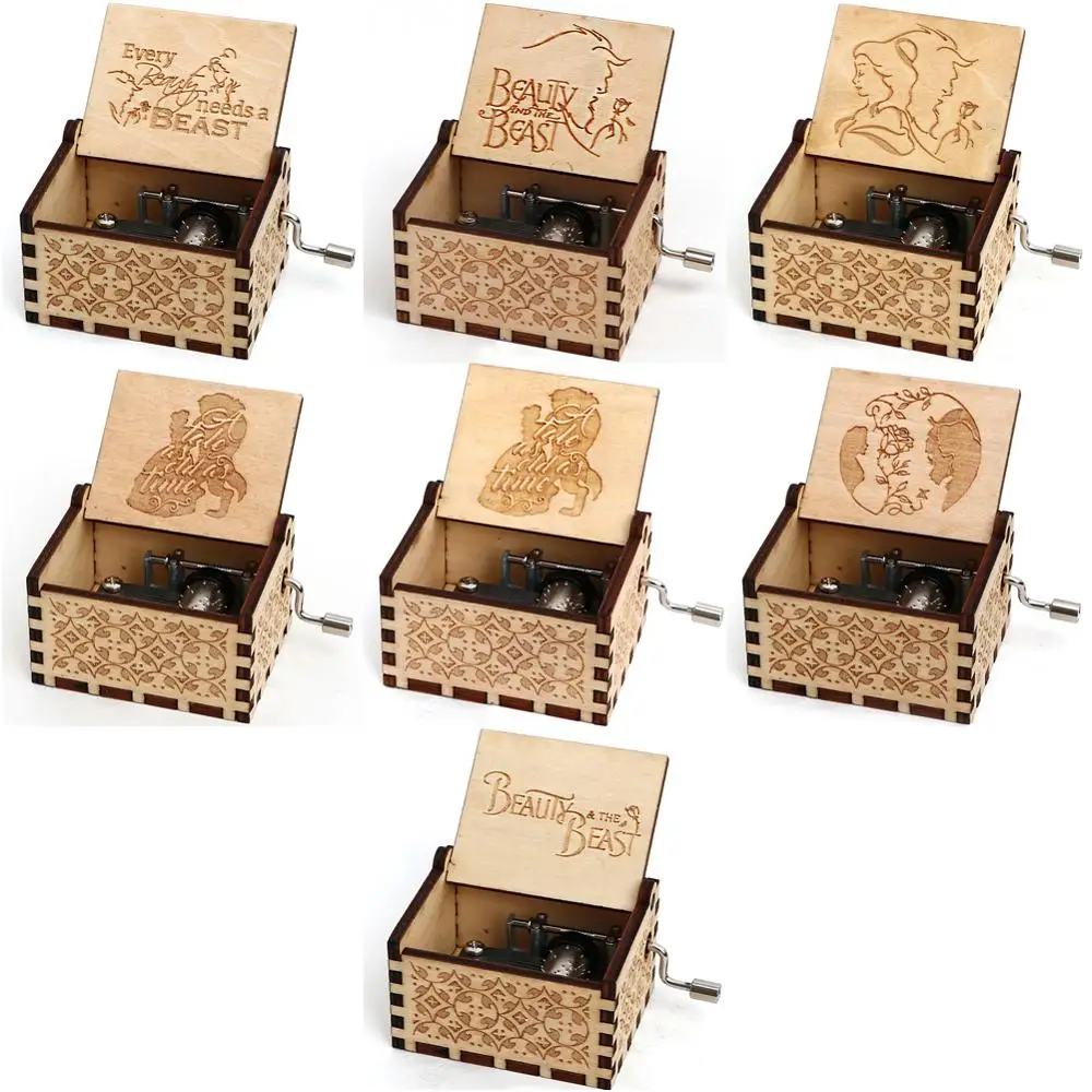 Деревянная резная музыкальная шкатулка Красавица и Чудовище музыкальная шкатулка подарок для влюбленных подарок на день рождения Рождественский подарок украшения для дома