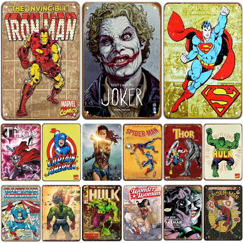 Супергерой табличка металлическая винтажная жестяная вывеска Pin Up потертый шик Декор винтажные металлические знаки бар украшение металлич...