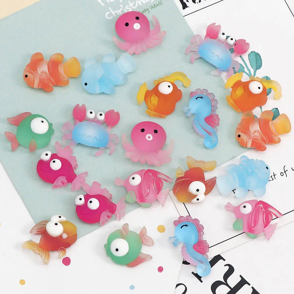20 шт. смешанных стилей, Милая Рыба, краб, морская лошадь, кальмар, плоская задняя часть, кабошон, животное, смола, плоская задняя часть, кабошона для DIY, украшения для дома