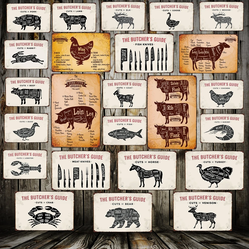 [Mike86] сокращений Мясник руководство говядины Свинья Утка мясо коллекция Олово Войти Декор Ретро настенная доска картина из металла FG-229