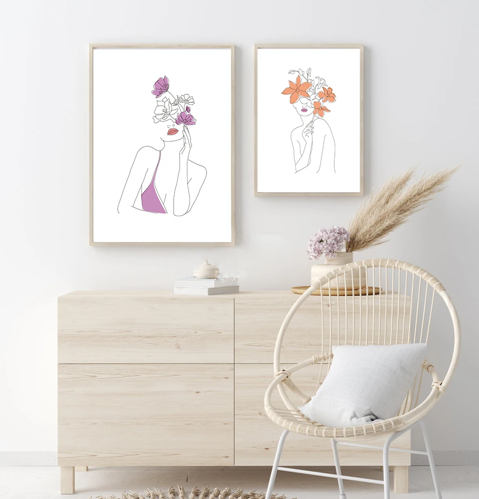 Минималистичные принты Плакаты рисунок линии Холст Картина красочные обои Гостиная Спальня дома Для женщин с цветами искусство
