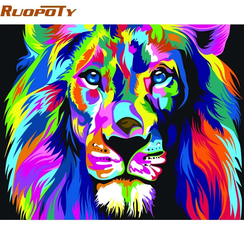 RUOPOTY Рамка Картина Красочные животные Лев DIY живопись по номерам Набор Холст по номерам для домашнего декора уникальный подарок искусство на стену