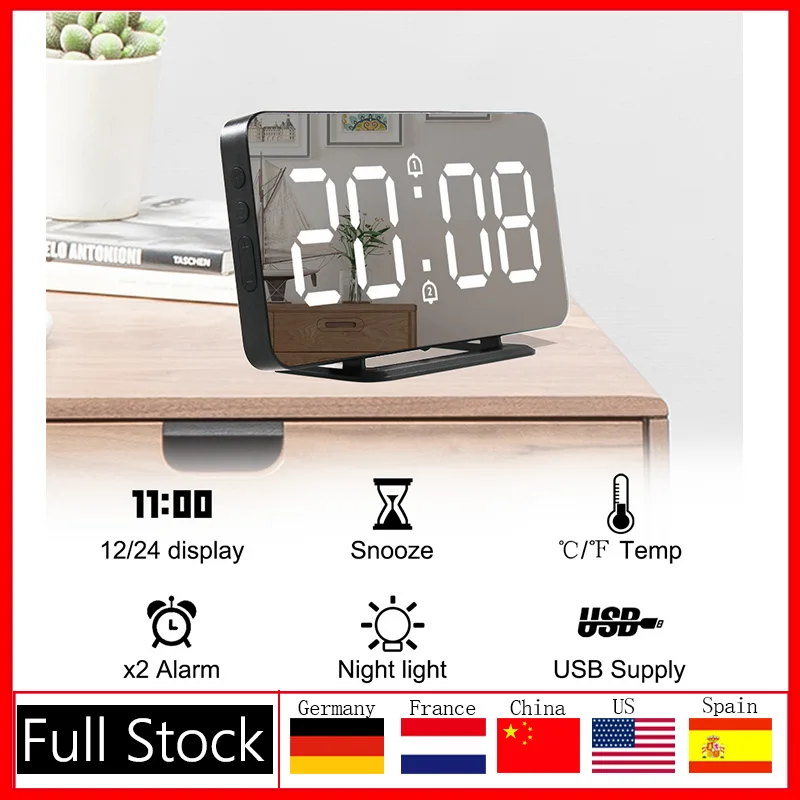 Настенные часы зеркальный Будильник Электронный температурный Повтор часы USB ночник цифровой светодиодный часы украшение дома