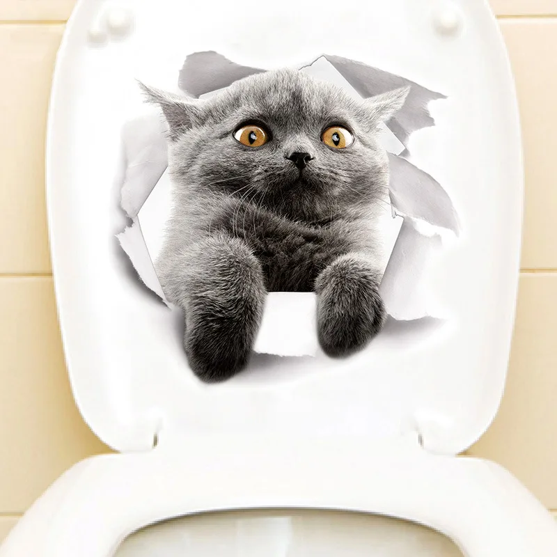 Горячая 3D милый котенок наклейка на крышку унитаза дети спальня стены Deocration Кот мультфильм наклейки на холодильник