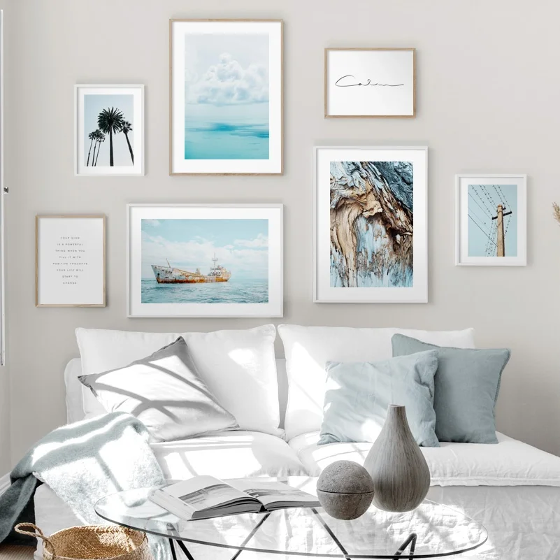 Облако, морской корабль, птица, Кокосовая пальма, цитаты, настенное искусство, холст, живопись, скандинавские плакаты и принты, настенные кар...
