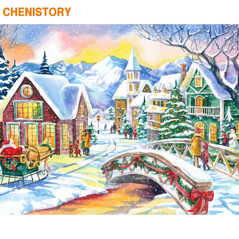 CHENISTORY Рамка Рождественская картина DIY живопись по номерам современный подарок настенная Художественная Картина ручная роспись маслом для домашнего декора