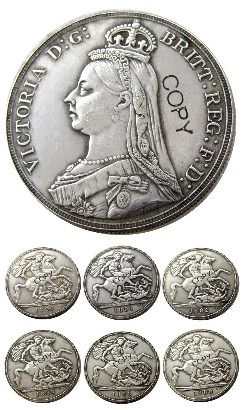 Англия Великобритания набор (1887-1892) 6 шт серебро одна Корона Королева Виктория Посеребренная копия монеты