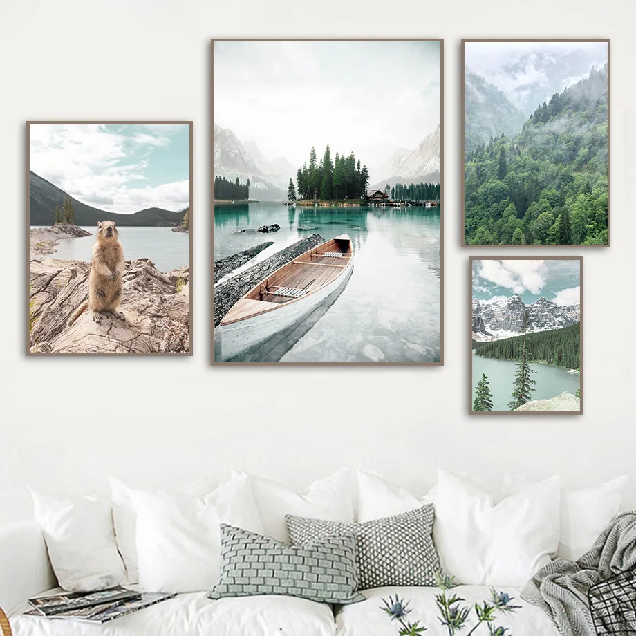 Лес Картина горная лодка озеро завод Бивер настенная живопись холст скандинавские постеры и принты настенные картины для декора гостиной