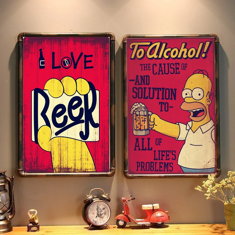 I Love Beer винтажные металлические оловянные знаки для дома, бара, клуба, паба, металлические декоративные металлические тарелки, настенные наклейки, Симпсоны, плакат 30x20cm