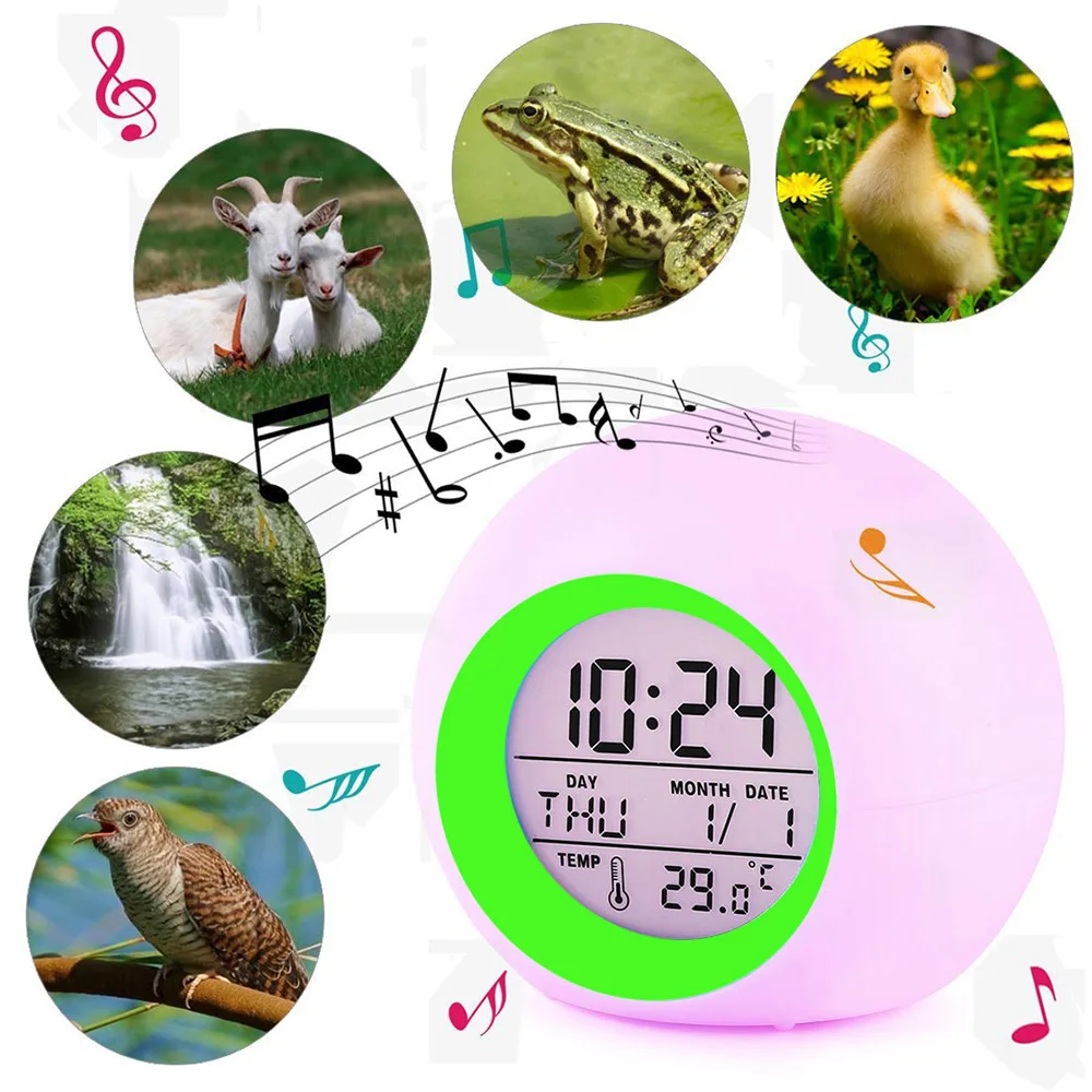 Цвет изменение цифровые, со светодиодом будильники Touch Управление детей проснуться будильник с термометром природа музыкальные подарки