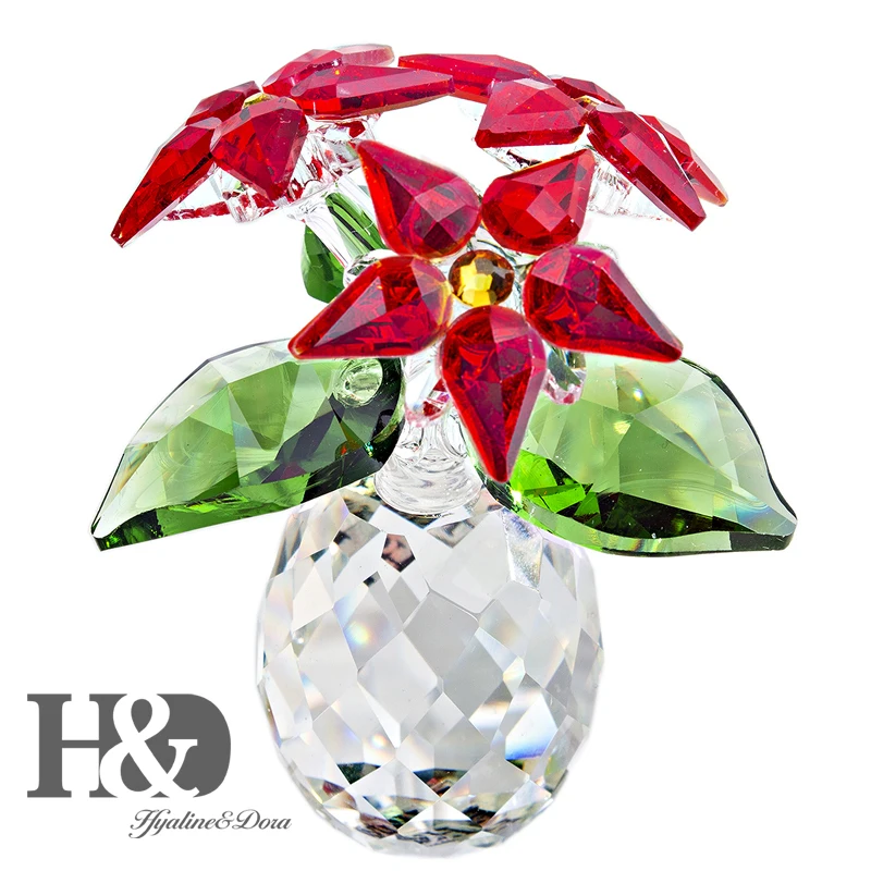 H & D Кристалл пуансеттия небольшой праздник орнамент офисный стол пресс папье свадебный Рождественский подарок цветок коллекционные стекл...