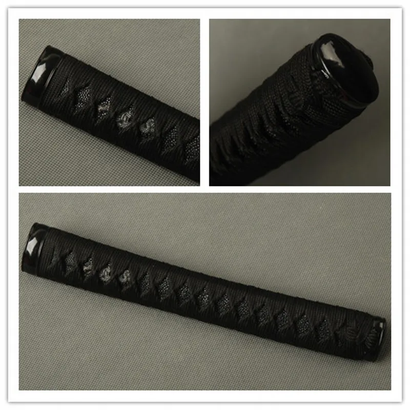 Высокое качество древесины Ремесленная ручка Tsuka для японского меч катана с черным шелком Ито и подлинной черный Rayskin сплав Fuchi Kashira