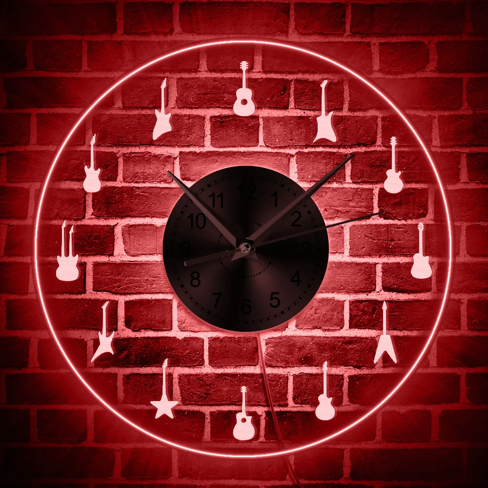 Гитары пород круглый светодиодный настенные часы для гитары семья современные настенные часы музыкальный инструмент настенные часы ручной работы подарок для музыканта