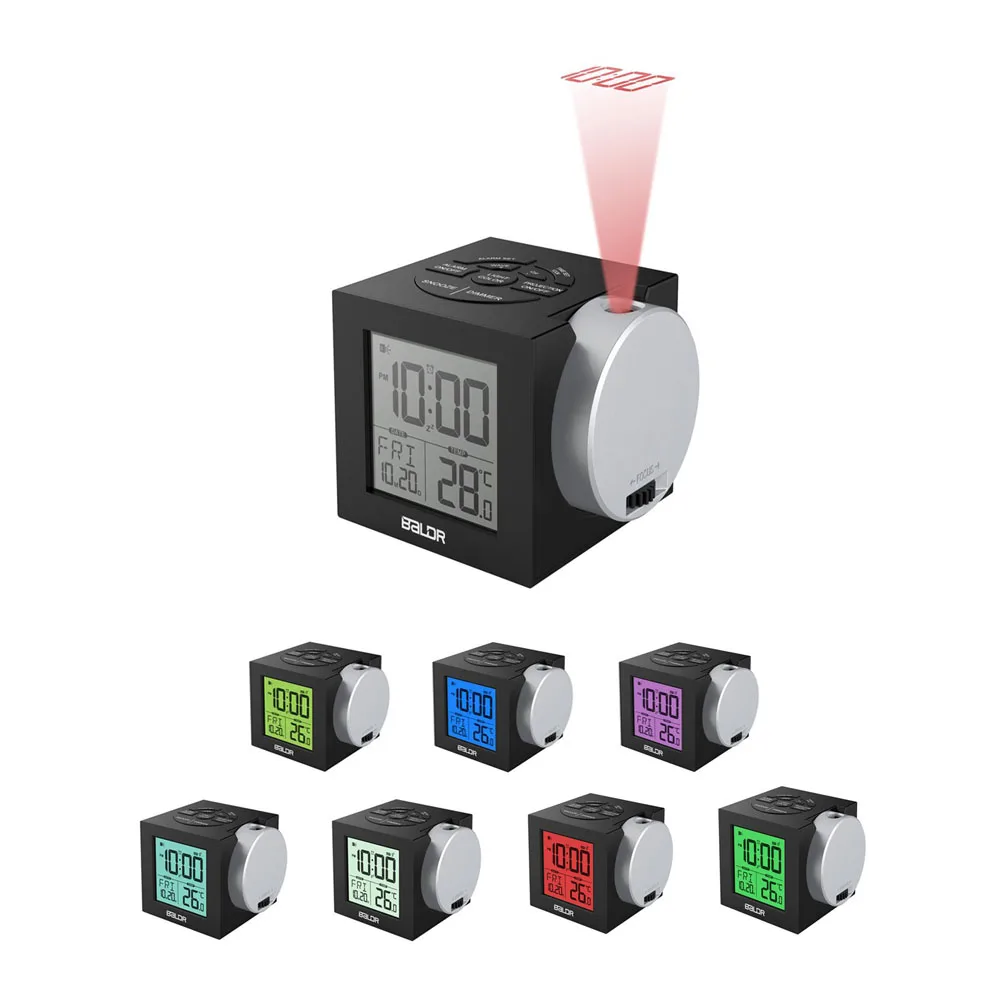 Baldr ЖК дисплей проецирования Будильник Подсветка электронный цифровой проектор часы стол температура дисплей с 7 цветов