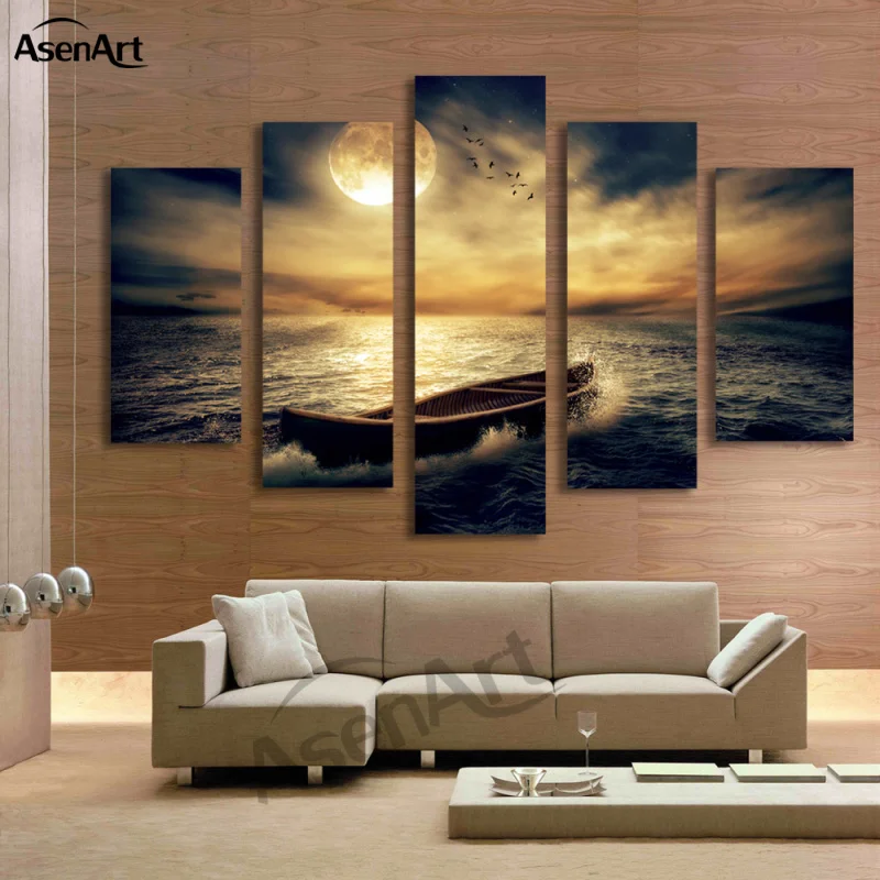 5 Панель Закат на море картина одна картина с изображением лодки для гостиной домашний декор настенные принты для художественных холстов картина без рамки