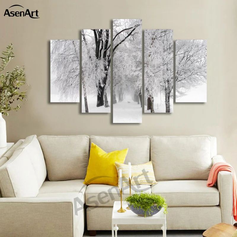 5 панель настенное искусство зима снег картины современное Дерево картина для гостиной настенный Декор принты на ткани картина без рамки
