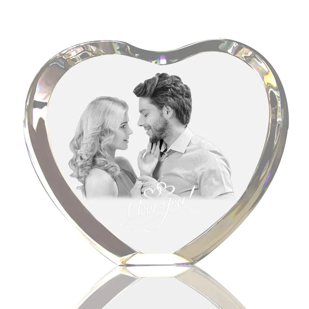 Персональный заказ 2D/3D лазерная рамка прозрачное гравированное в форме сердца травленое стекло фоторамка сердце блок для свадебных подарк...