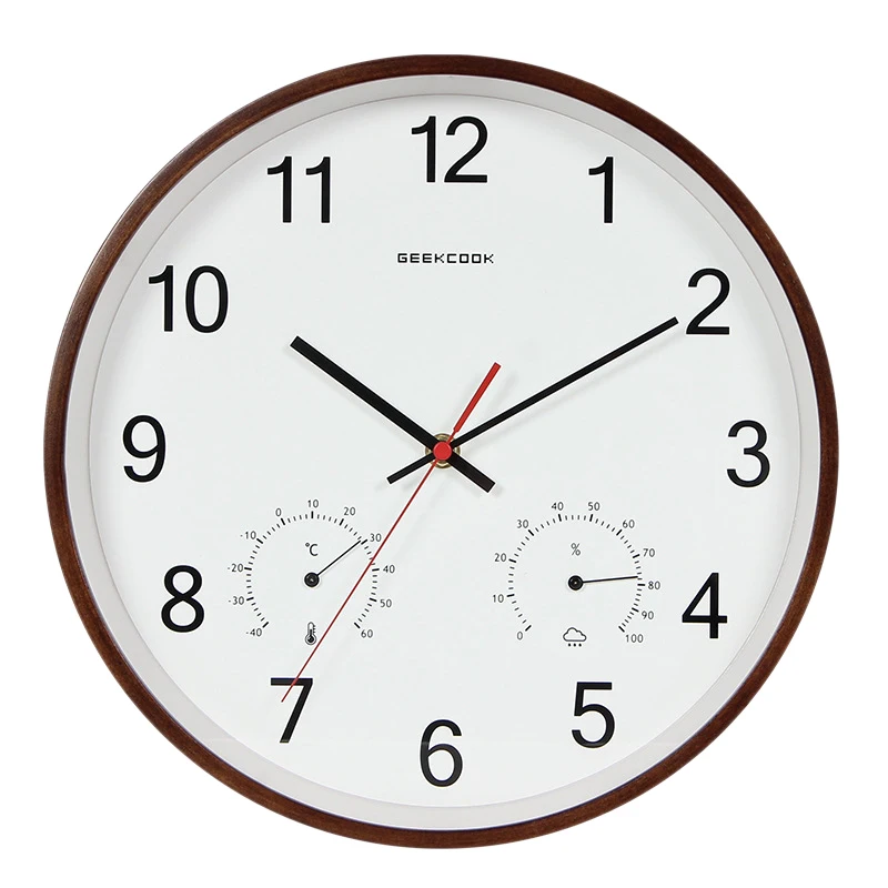 Geekcook 12 дюймовые Классические Деревянные Настенные часы Тихий кварцевый термометр гигрометр Влажность настенные часы для гостиной офиса