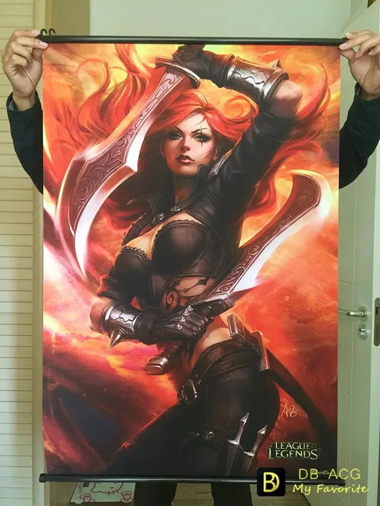 Лига Легенд: Катрина "HD игра свитки плакат для баров-кафе домашние декоративные Баннеры Висячие искусственная Водонепроницаемая Ткань Декоративные
