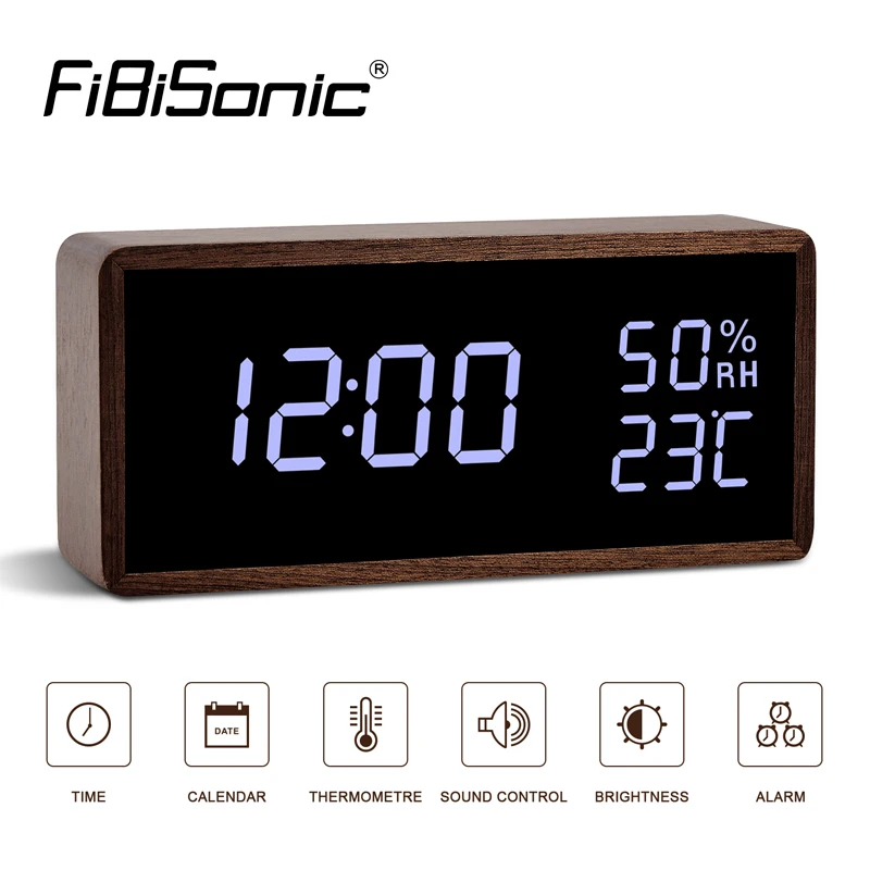 FiBiSonic Современный цифровой светодиодный Будильник Звуковое управление деревянный Despertador настольные часы влажность температура дисплей