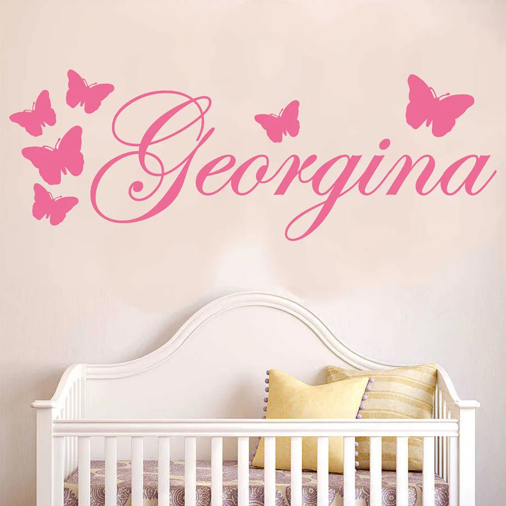 Бабочки стены Стикеры имя наклейка индивидуальные имена винила Арт Стикеры s обои для детей Спальня девушки детские наклейки D253