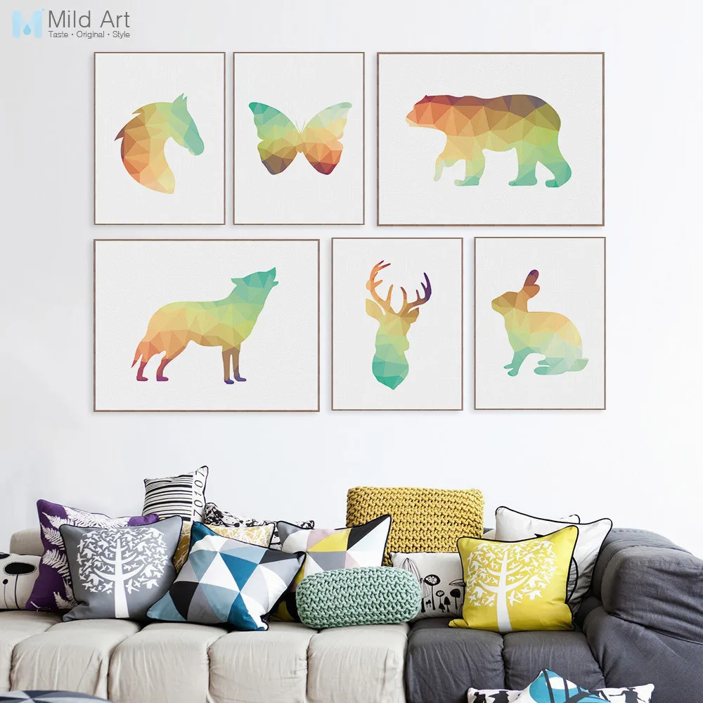 Современный оригинальный геометрический абстрактный животных Медведь лошадь Лев фильм Холст A4 Принт плакат, панно Home Decor Живопись нестанда...