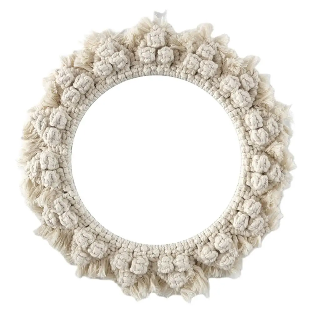 Круглое кружевное Настенное подвесное зеркало в стиле арт-деко, ручная работа, хлопковая веревка, круглое зеркало для гостиной