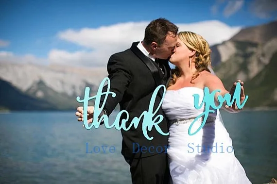 free shipping Thank You Sign - Calligraphy Style - Wedding Signs Photo Props - Just Married Wedding Signs for Thank You Cards