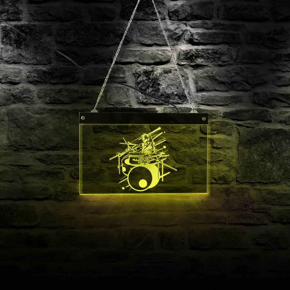 Рок Музыкальный барабан многоцветной светодиодный светильник настенное искусство музыкальная студия Прямоугольный светильник доска бара...