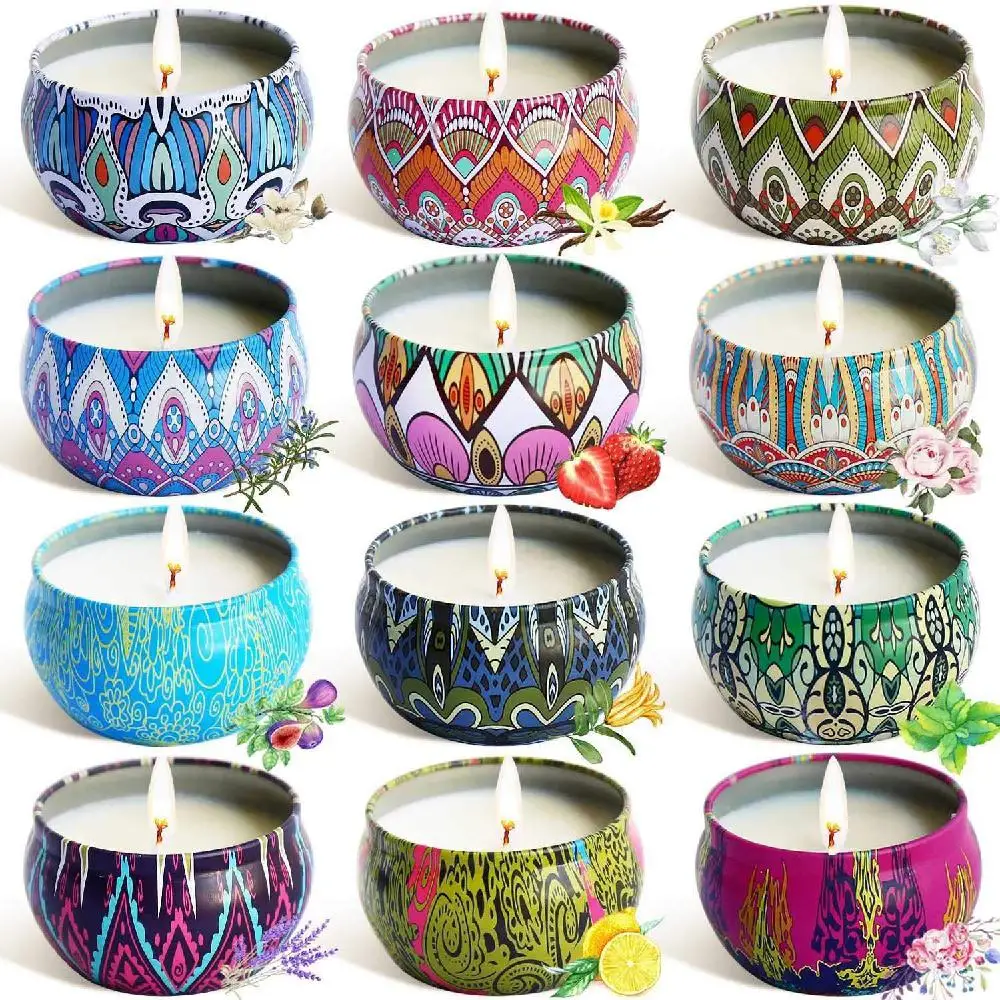 12 шт./компл. соевый воск ароматические свечи в этническом стиле Стиль аромат свечи для путешествий и дома, одежда для свадьбы, дня рождения украшения