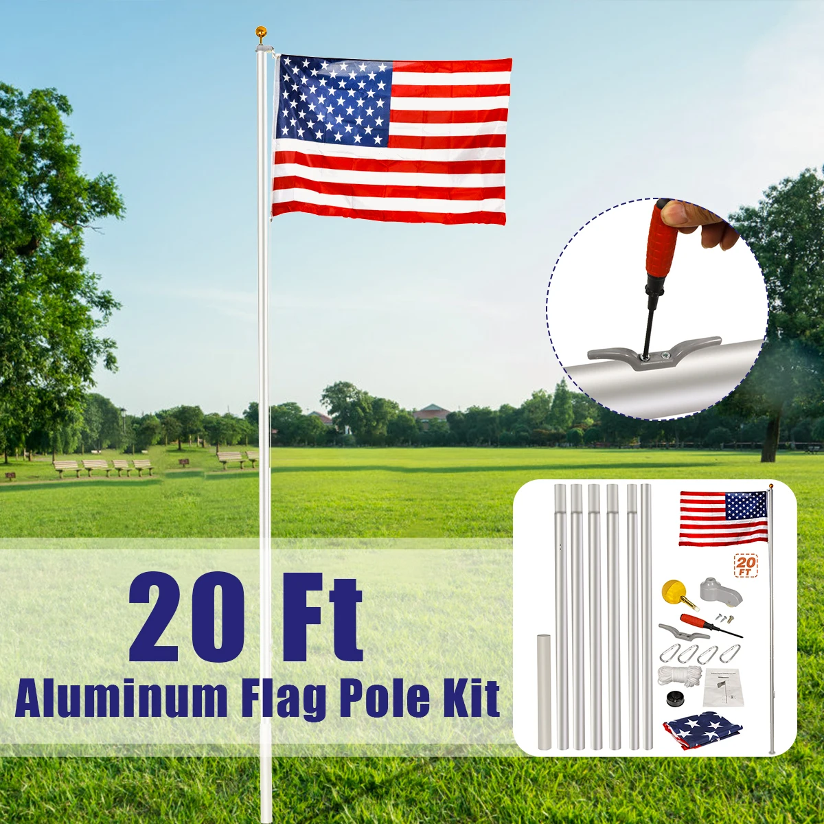 20FT Алюминий телескопический флагшток Портативный День Независимости флагшток комплект + Винты Держатель кронштейн комплект RU US Бесплатная доставка