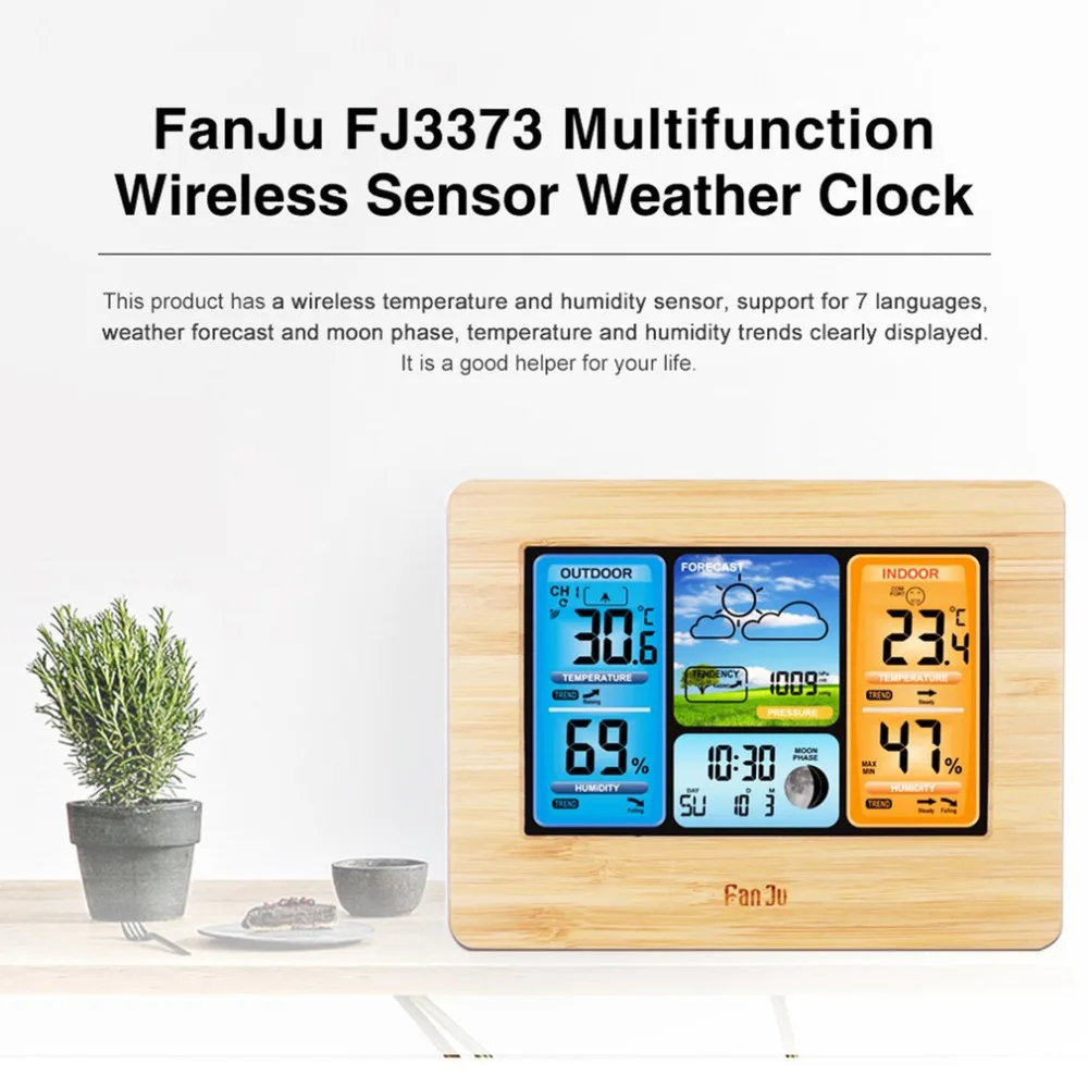 Цвет Экран будильник с прогнозом погоды бамбуковая поверхность волна часы многофункциональные электронные часы-будильник вечный календарь