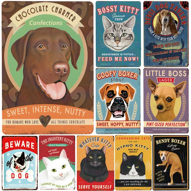 [InFour +] Новые милые кошки и собаки, металлические знаки, домашний декор, винтажные оловянные знаки для паба, декоративные тарелки для дома, металлический знак, настенная доска, металл