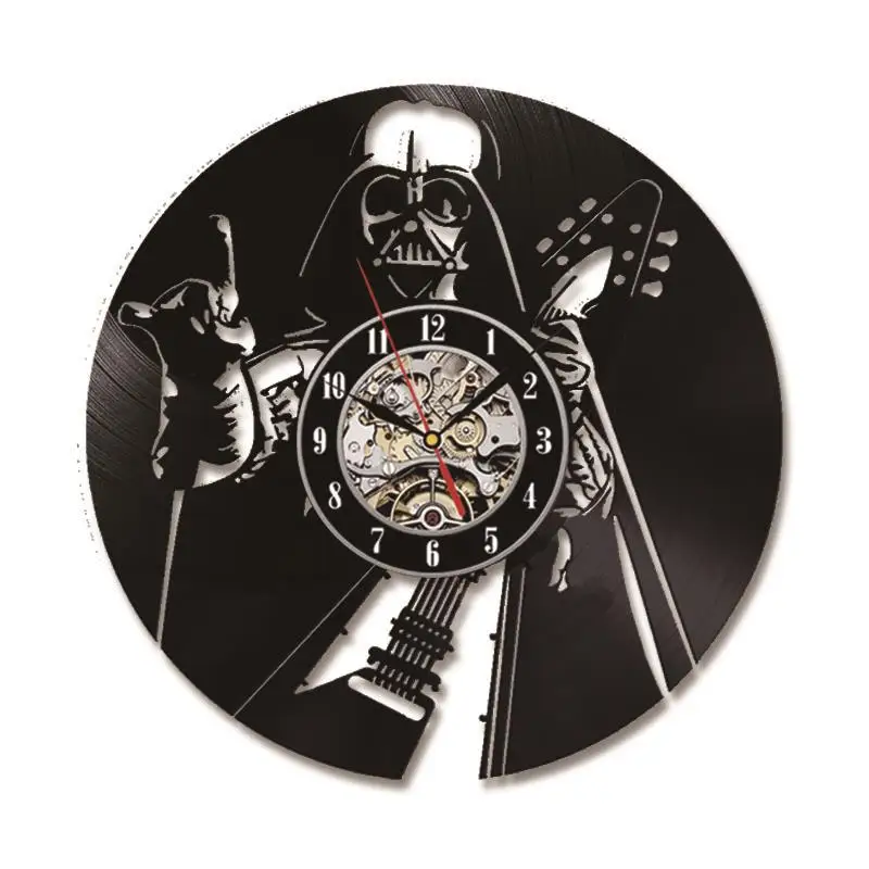 Черный полые записи CD часы Звездные войны тема под старину Стиль Винил настенные часы Творческий молчит висит часы