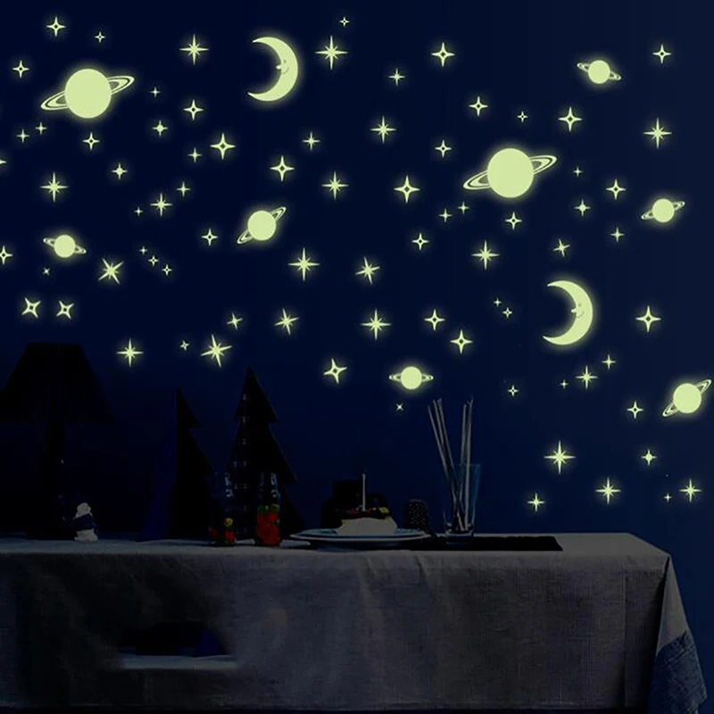 100 шт Звезда Луна флуоресцентные светящиеся настенные наклейки детские комнаты украшения дома