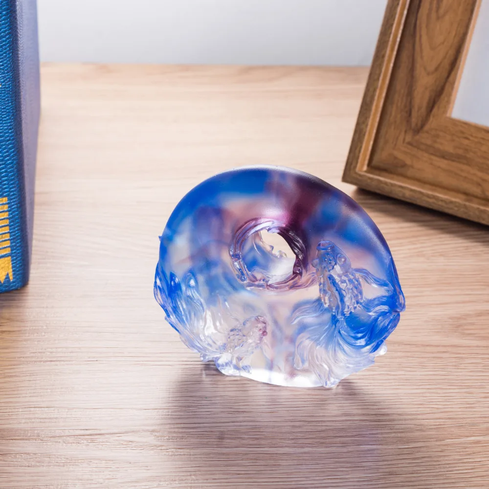 Оптовая продажа 3D ручной работы красные, синие статуэтки в виде рыб миниатюры украшения стола Стекло фигурки животных украшение дома номер ...